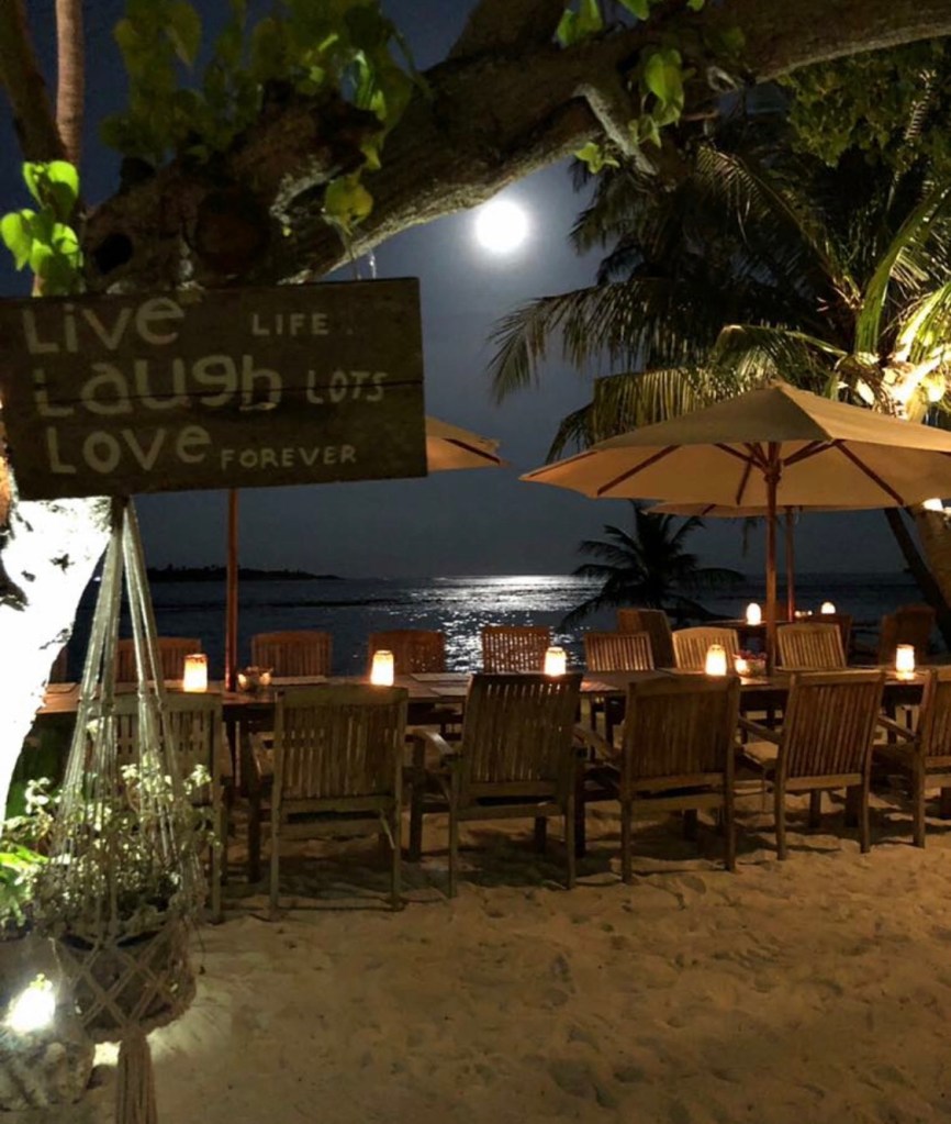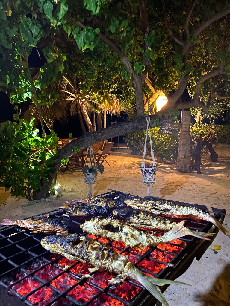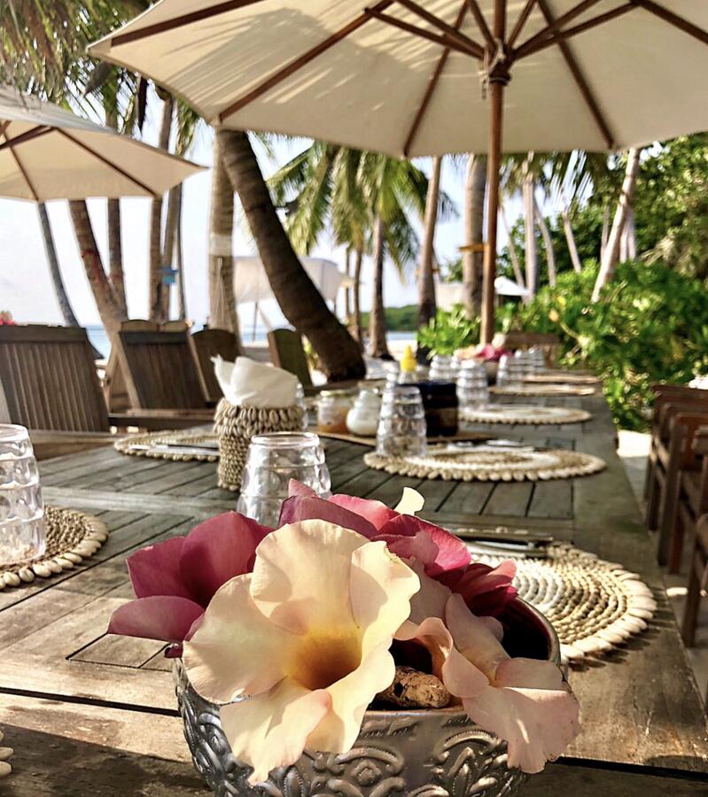 ROSHI&MASSUNI (pranzo maldiviano). Viene servito un piatto con del riso, delle piadine vuote e un insalata maldiviana “massuni” fatta con tonno,lime,cipolla dolce e cocco. Inoltre nel tavolo vengono messi piatti con piselli, fagioli,melanzane al fughetto che servono a farcire le vostre piadine. Si conclude il tutto con crepes alla Nutella o frutta per chi non mangia dolci.